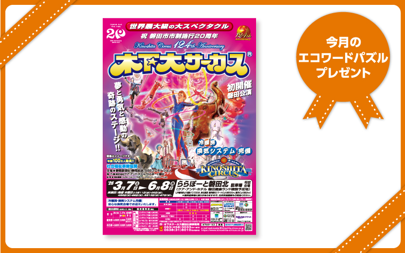 【エコワードパズルプレゼント】「木下大サーカス 招待券」10組20名様
