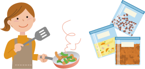 野菜は、冷凍・ゆでるなどの下処理をして、 ストックする。