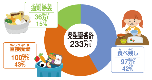 日本の食品ロス量は、年間464万tといわれています。とてももったいないですよね。大切な食べ物をむだなく食べきるにはどうしたらよいのでしょうか?ここでいっしょに見てみましょう!