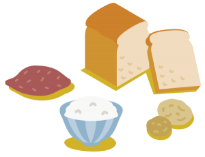 食品例:ご飯、パン、シリアル、めん類など