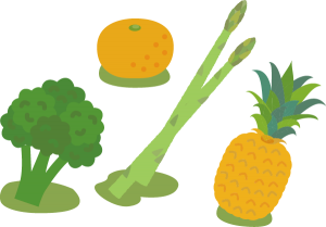 食品例:ブロッコリー、アスパラガス、パイナップル、オレンジなど
