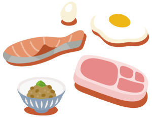 食品例:肉、魚、大豆製品、乳製品など