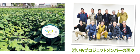 再生リン入り肥料を使って、サツマイモが育てられているよ。このプロジェクトでは、栽培するサツマイモを“浜いも”と名付けて、新たなブランド化を目指しているんだ。