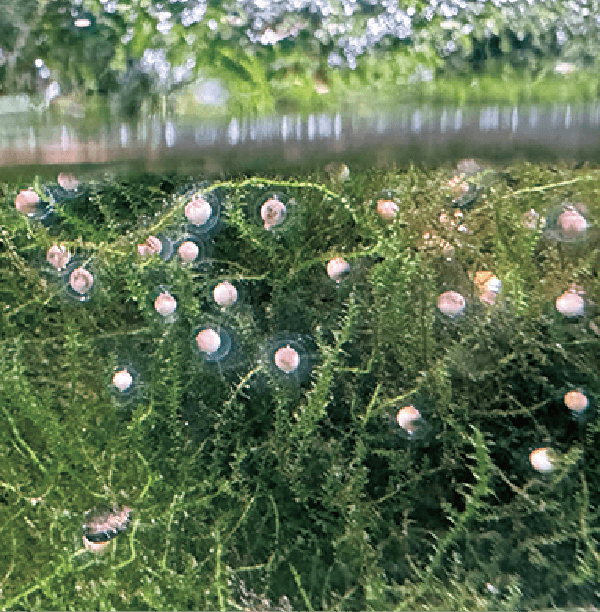 ヒガシ二ホンアマガエルは5~8月ごろが繁殖期で、産卵後2~3日でふ化して、オタマジャクシになります。12月~4月ごろは、木のむろの中や落ち葉の下などで冬眠します。カエルになったばかりのころは体長1.5㎝程で、2~3年で最大約5㎝まで成長します。体は、緑の葉などが多い所では緑色に、木や土などが多い所では茶色に、周囲の環境に合わせて変化します。