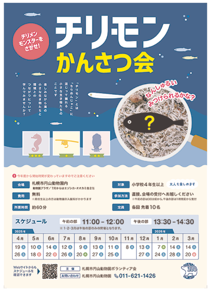 円山動物園は「食べることのたいせつさ」を楽しく学べるコープさっぽろの食育イベント「食べる・たいせつフェスティバル2025」で「チリモン観察会」を行うよ。タツノオトシゴなどのレアなチリモンを探して、楽しみながら海の生き物の豊富さを学ぼう!