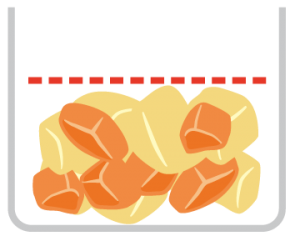 なべに入れた材料がギリギリ全部かくれるくらいの量