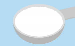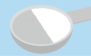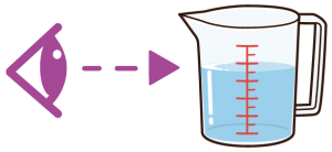 カップに入れ軽く下に打ち付けてならし、横から目盛りを見る