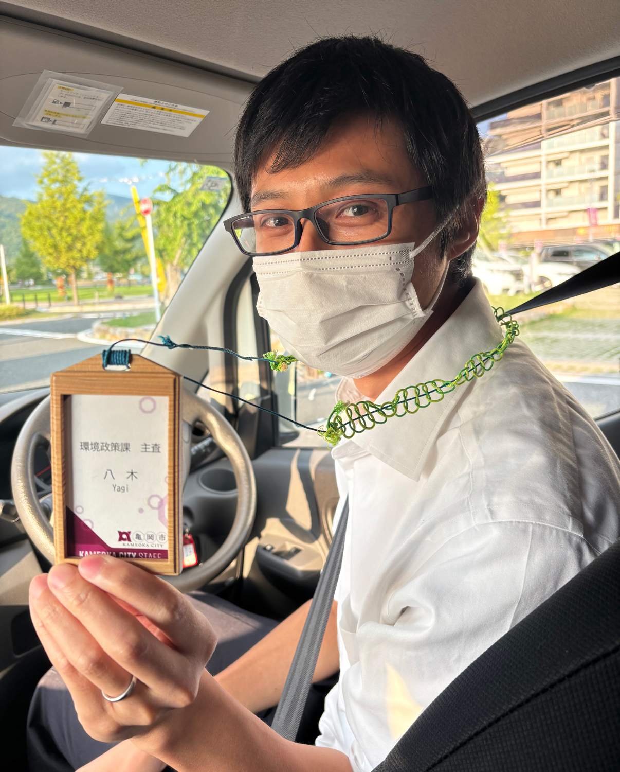 今回駅まで送迎してくれた環境政策課の八木さんのネームケースを見てびっくり!