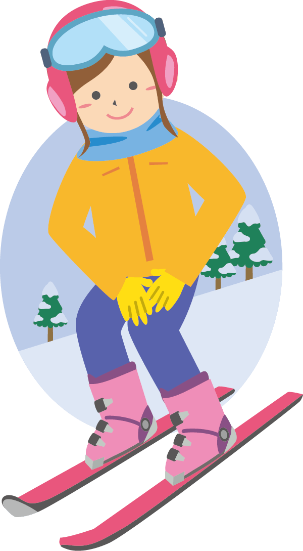 スキーをハの字ですべるときは、ひざ同士をしっかりとくっつける。