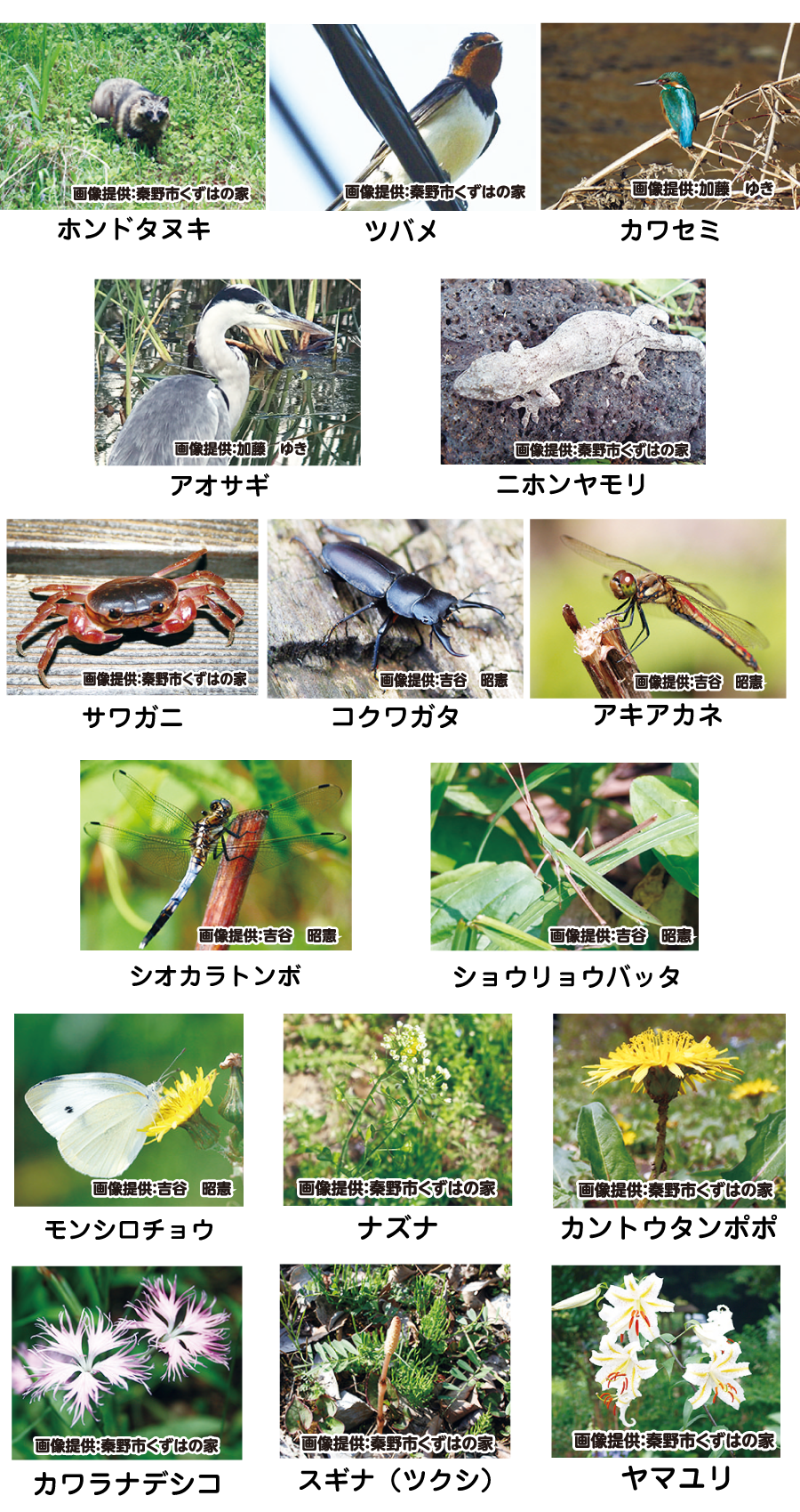 [里山のいきもの]対象種(16種)
