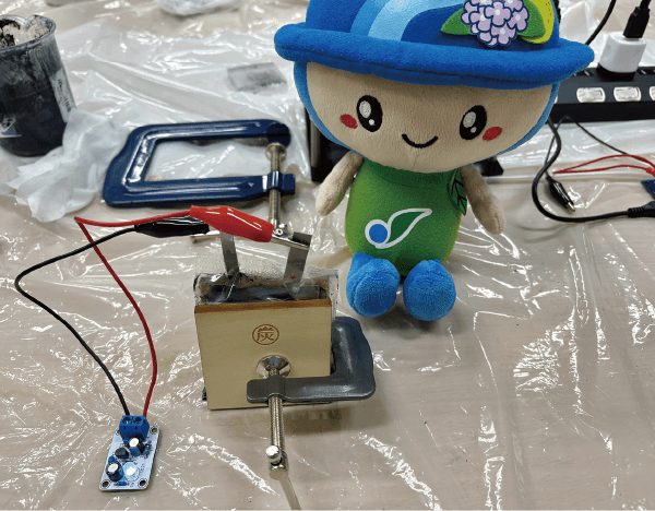 電池ってとても難しいものからできてるイメージがあると思うけど、昔の人々のように自分たちで木を切って炭を作る延長で蓄電装置が作れるって知ったら、自分でも作れそうって気持ちにならない?実は木炭から蓄電装置を作るワークショップを、この夏から定期的に相模原市内のイベントなどで実施しているんだ。作るのは小さなものだけど、急速充電できてLED電球を光らせることができる装置を簡単に作ることができるんだ。冬にも開催する予定なので、気になったらぜひ体験しに来てね!