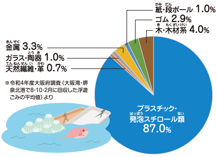 ごみが川や海に流れて、魚や鳥が食べてしまうことがある。