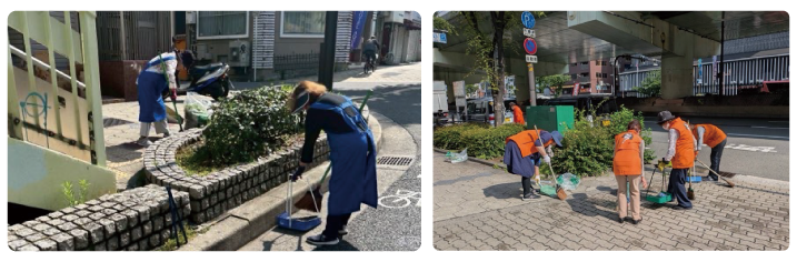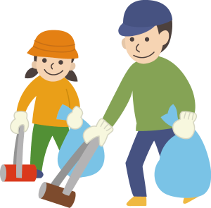 たくさんの人たちが、進んで道路に落ちているごみを集めたり、よごれている所を掃除したりして、まちをきれいにする活動を行っているよ。
