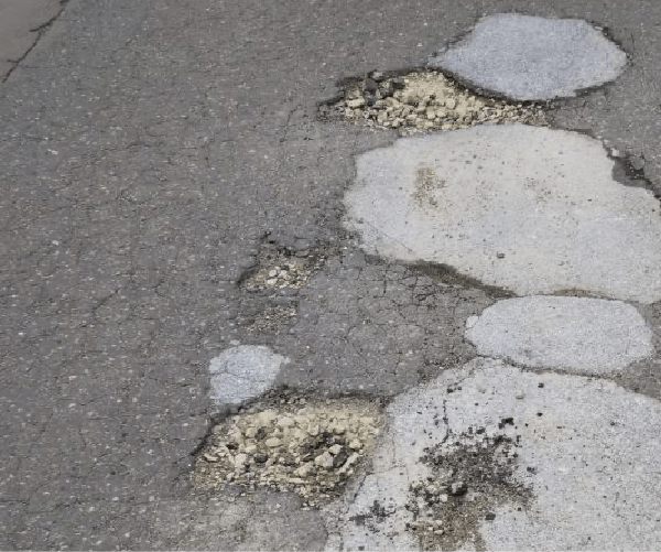 雪がとけたり、こおったりをくり返すことで、アスファルト道路に穴(ポットホール)が空き、車の事故が増える!
