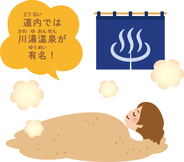 ● 海岸や湖畔などで温泉熱により温まった砂をほって体をうめる。