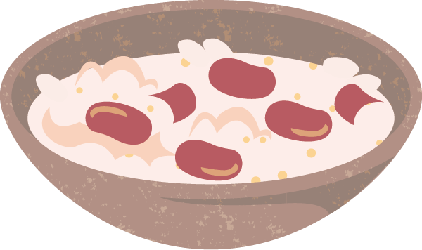 小豆の赤は太陽を意味する魔除けの色で、夜の長い冬至に食べて、やくばらいをする。