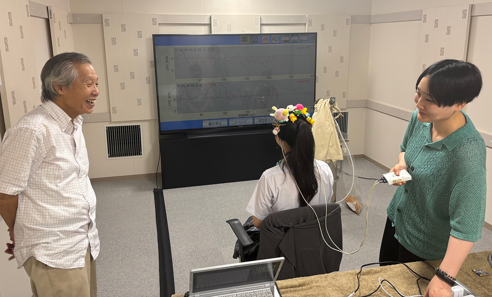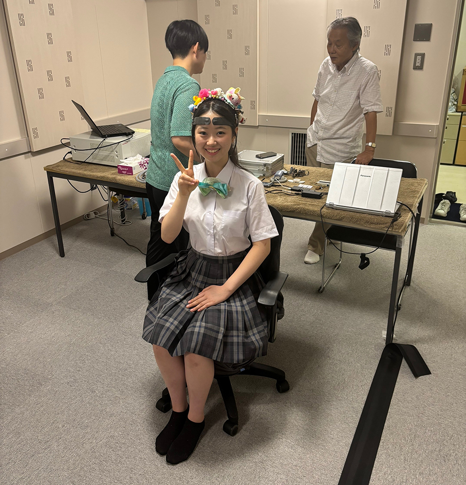 脳活動、心拍数、血圧、唾液でのストレスホルモン濃度チェックなど!