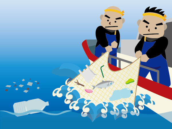 漁師の人があみを引き上げると、魚よりもごみが多いことがあるそうだよ。また、海藻などにごみが混ざると、取り除くのに大きな手間がかかってしまうんだ。