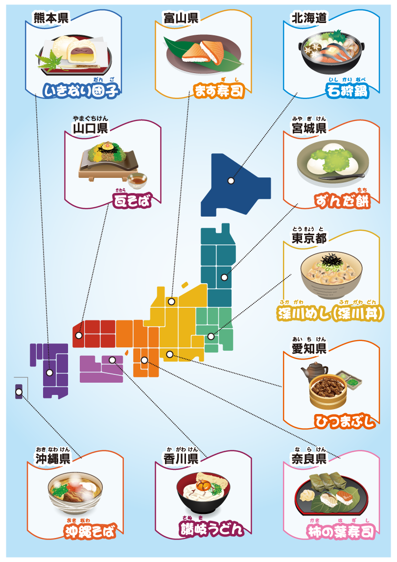 日本にはさまざまな郷土料理があるよ! どのような料理があるのかな?