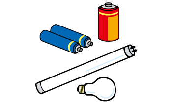 電池、バッテリー、小さい電気製品、蛍光灯、子ども服など