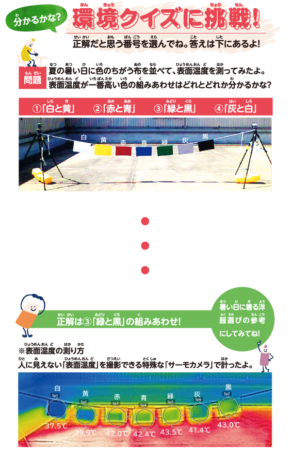 みんなも、近くに出かけるときは、自動車に乗る代わりに歩いたり、自転車に乗ったりして、これからもきれいな空気を守っていこうね!