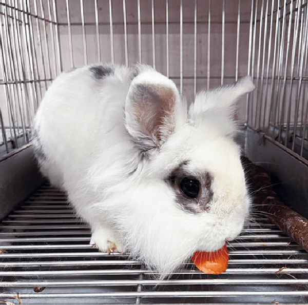 ふれあい動物広場には、現在10頭のウサギがいます。「ふれあいコーナー」に交代で出て、来園者のみなさんとふれ合ったり、ニンジンをもらったりしています。