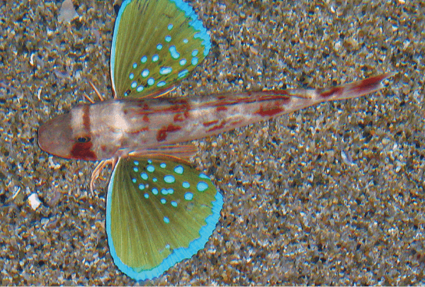 あざやかな青色にふち取られた胸ビレがチョウの羽のよう