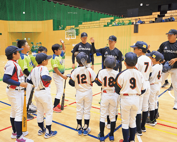さらに、野球をがんばっている全道の小学生を応援するため、2019年から毎年、道内各地で小学生向けの少年野球教室を開催しているんだ。2025年は札幌に始まり、小樽、千歳、函館、富良野、厚沢部、旭川、北見、釧路、帯広の10カ所で開催。合計625名の小学生が参加してくれて、野球を通じて選手たちと交流をしたよ。