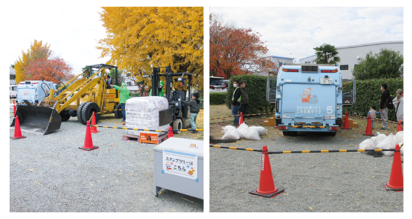 会場では、古本市やリサイクル品の販売の他、環境について学べる体験教室やワークショップ、働く車の展示など、さまざまな催しが行われました。働く車の展示では、いつも街のごみを回収してきれいにしてくれているごみ収集車や、重い物を運ぶショベルローダー、フォークリフトを間近で見ることができました。体験教室では、ごみの分別をゲーム感覚で学ぶことができ、楽しみながら環境について考えるきっかけになりました。