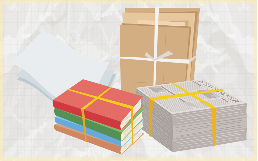 1番ごみとして捨てられがち! 実はリサイクルできるものがたくさんあるから、よく確認しよう。ひもで束ねるか中身の見えるごみ袋で出そう。