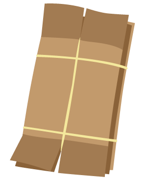 粘着テープや伝票をはがして、必ず折りたたんでひもで束ねよう(10枚程度まで)。