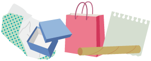 紙袋、包装紙、メモ用紙、紙箱、ラップやトイレットペーパーのしん、ポスターなど