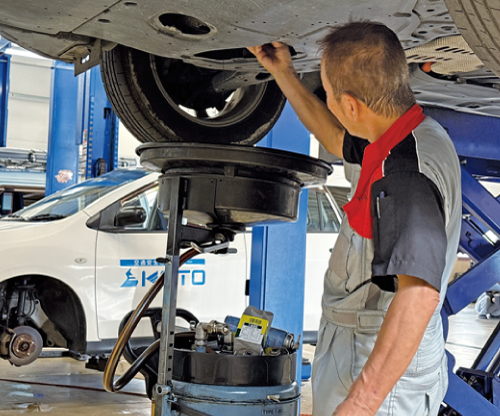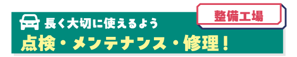 クルマの事故や故障を防ぎ、長く使うために欠かせない、点検やメンテナンス、修理をしているよ。部品交換には、「リサイクル部品」が大活躍! 交換後の役目を終えた部品は、種類ごとに分けて専門のリサイクル業者に引きわたしているよ。