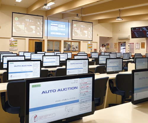 まだ乗ることができるクルマの状態を厳しく検査して、次に乗る人へ引きつぐための取引が行われているよ。専門の検査員がチェックするのは、なんと100項目以上! 全国の中古車販売店の人たちが、会場のパソコンやオンラインでオークションに参加するんだ。