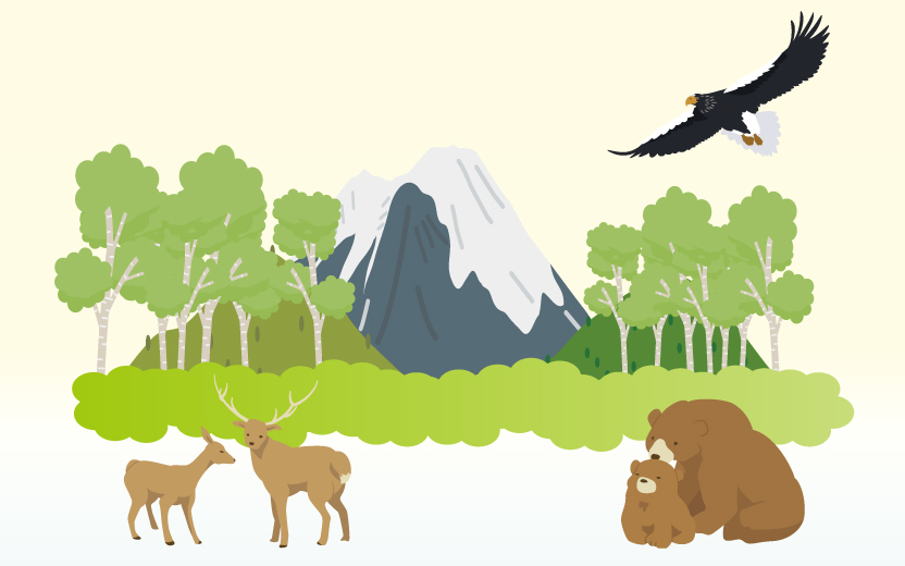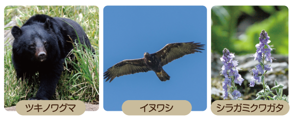 それぞれの世界自然遺産には、さまざまな動植物が暮らしています。 その土地ならではの固有種や絶滅のおそれのある種も生息しています。 これらの生き物や自然を守るために、多くの取組が行われています。