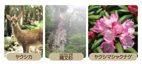 九州本島最南端から南に約60km、東シナ海と太平洋の間に位置しています。島の中央には宮之浦岳(1,936m)があり、多数の河川が深い谷に流れています。雨が多く、ヤクスギとよばれる樹齢1,000年以上の天然スギが多く生育しています。