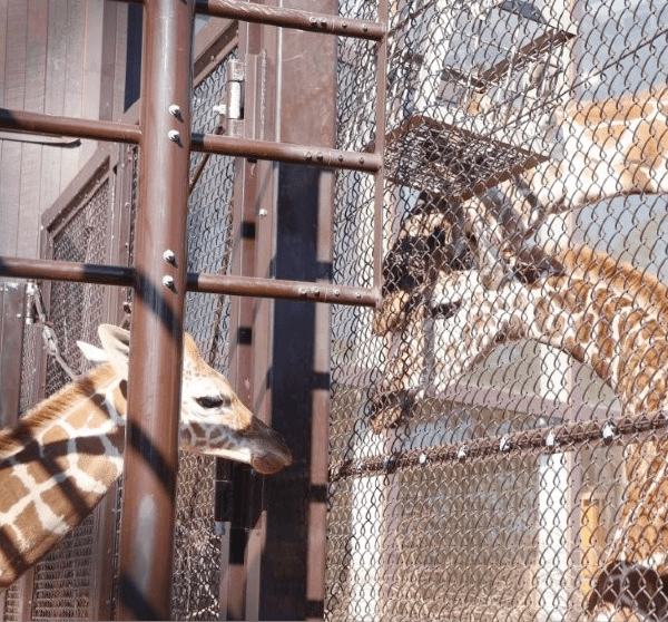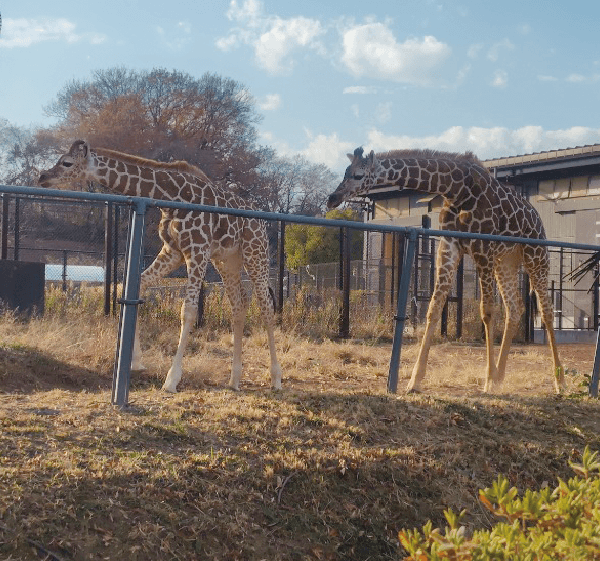 野生のキリンは赤ちゃんのいる数組の親子がいっしょに過ごすそうです。1頭の母親キリンと赤ちゃんたちを残して、他の母親キリンたちがえさを食べに出かけることもあります。年の近いジャンプとスズマルがいることで動物園でも野生のキリンたちの姿が垣間見れるとうれしいです。