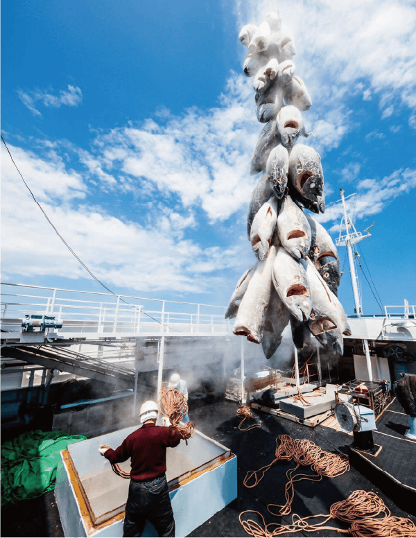 海でとれたマグロはすぐに血抜きをして、エラと内臓を処理した後、船上で-60℃に急速冷凍されます。マグロは漁場によって旬の時期が異なりますが、この冷凍技術によって鮮度が保たれ、いつでもみなさんに旬の味を届けることができています。みなさんも地元清水のマグロをたくさん食べてくださいね。