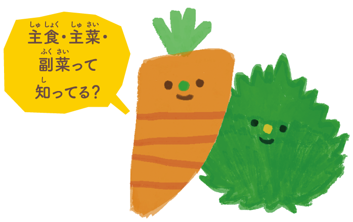 バランスの良い食事とは、 主食・主菜・副菜がそろっている食事のこと。さらに、間食などで牛乳・乳製品、果物を食べる栄養バランスはばっちり!学校給食は主食・主菜・副菜・牛乳(・果物)がそろっていて、バランス食の見本となるよ。何を組み合わせて食べたら良いかまよったときは、給食のメニューを思い出してみよう。
