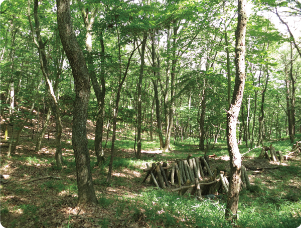 能勢町南部にある標高564mの山。昔は、まきや炭を作るために利用されていた樹林地だよ。
