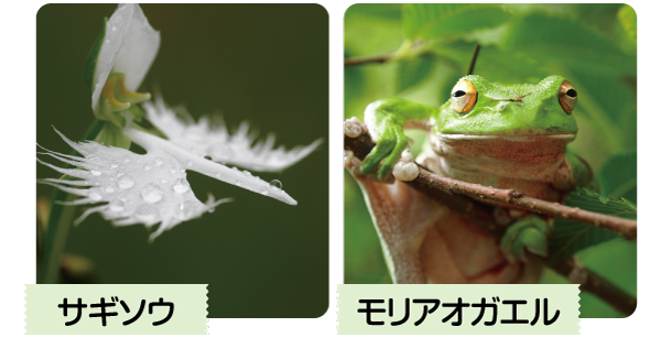 サギソウ、トキソウ、ミズトンボなど、全国的に減っている植物がたくさん確認されているよ。また、モリアオガエル、ハッチョウトンボなど、府内でも生息地が限られている生き物もいるんだ。