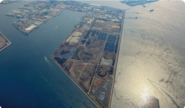大阪湾にある産業廃棄物処分場だった場所の一部を、生き物のすむ森になるように整備しているよ。