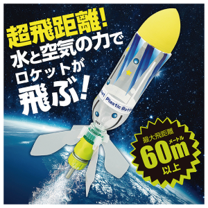 「ペットボトルロケットキット」は、水と空気の力で飛ぶロケットで、なんと最大飛距離が60m以上! 楽しい解説付きでペットボトルロケットが飛ぶ仕組みを作りながら学ぶことができるから、自由研究や科学実験にもおすすめ。
