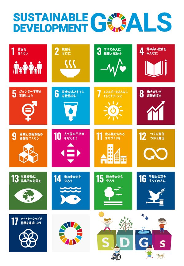 今、世界は、地球温暖化による異常気象、経済成長による格差の広がりなど、さまざまな問題や課題をかかえているよ。こういった問題を整理し、「地球上のだれひとりとして取り残さない」をキーワードに、だれもが安定して暮らし続けられるように考えられた国際的な目標が、2015年9月に国連サミットで採択された「SDGs(Sustainable Development Goals)」だよ。