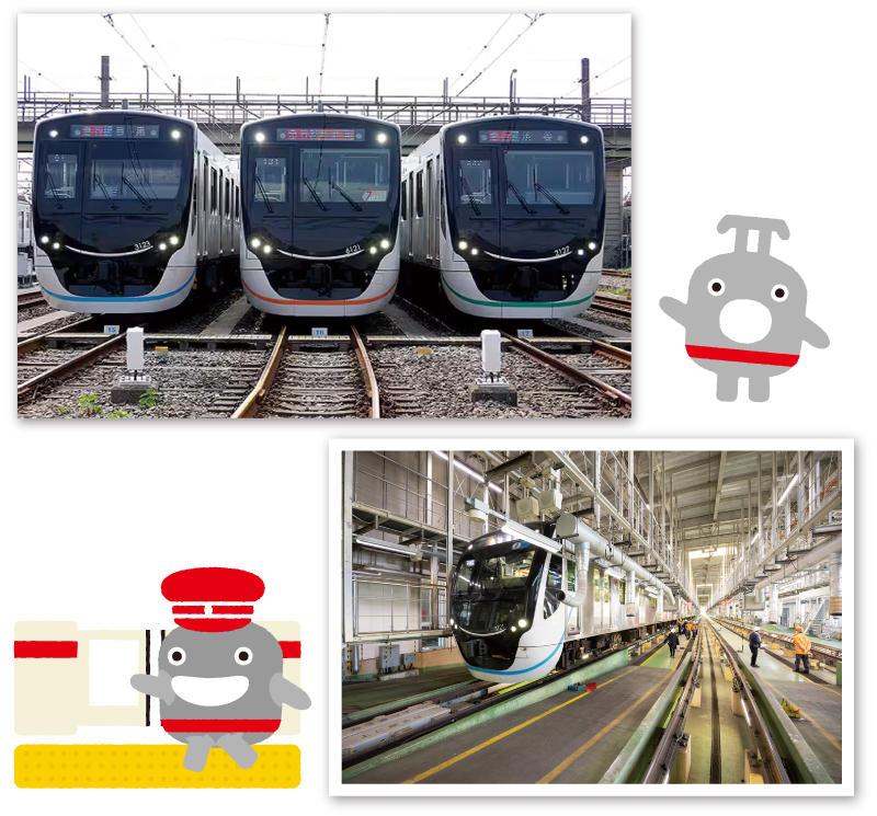 元住吉駅に隣接する東急線の車両基地。車両の検査や点検だけでなく、緊急時にも対応するため、24時間365日稼働しているよ。