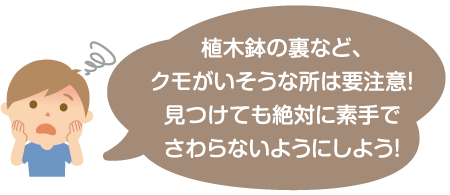 >>> セアカゴケグモの習性や注意点はこちら。おうちの人と見ておこう!