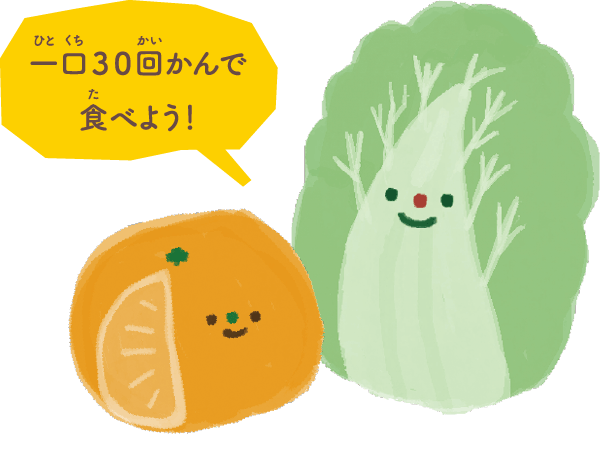 ・一口30回以上かんで食べる習慣を付けることが大切。