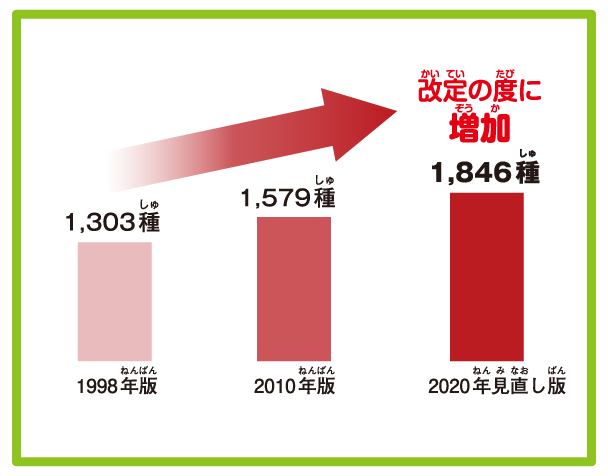 [東京都レッドリスト(本土部)掲載種数の経年変化]
