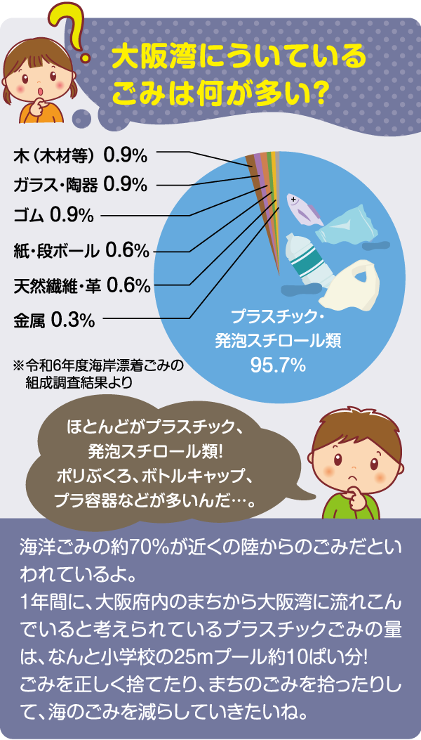 大阪では、川や海を守るために、いろいろな取組が行われているよ。今年は「全国豊かな海づくり大会」も大阪で開かれる予定! 海の大切さをみんなで考える大きなきっかけにしたいね。