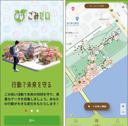ごみ拾いを続けるためのサポートアプリ「ごみゼロ」を使うと、楽しくごみ拾いができるよ。